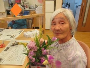 本日のお花をホワイトボードに書き、皆さんと一緒にお花をはじめ見て頂きました。