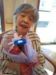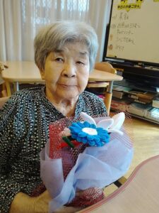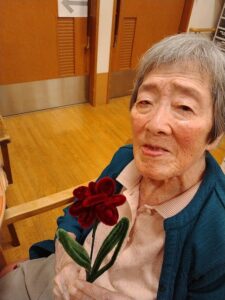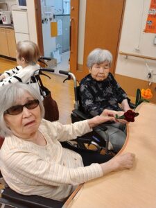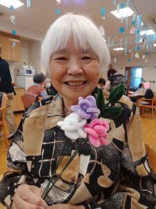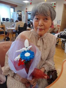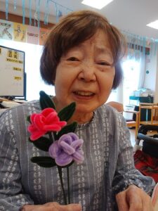 レク前や空いている時間でちょっとずつ活動していて、出来上がったら嬉しそうに持って帰っています。