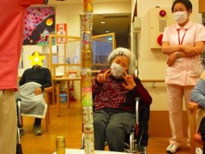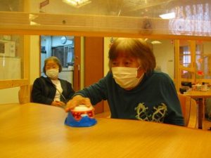 フロア内では缶積みゲームや的当て、カップラーメンの器を再利用し作成したアイスホッケー等様々なレクリエーションを行い、リボーンでは笑い声が響き渡っております?
