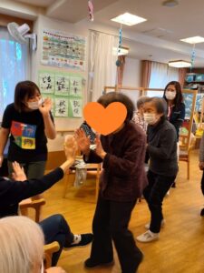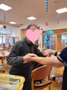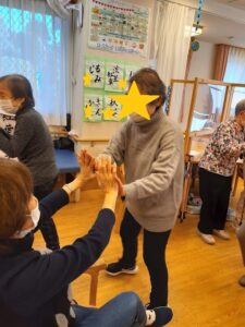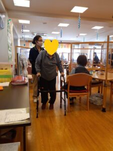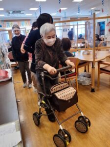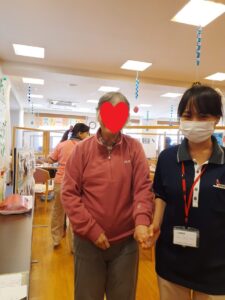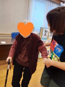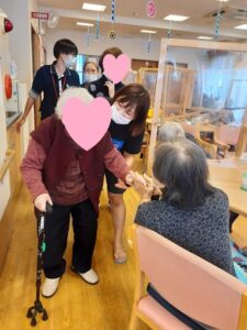 歩行の途中にでゲスト様同士、交流もされ、ハイタッチをしながら笑顔あふれる歩行練習でした。