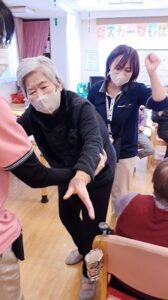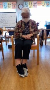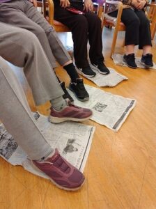 その後も、足で新聞を丸めるレクリエーションをしたりと