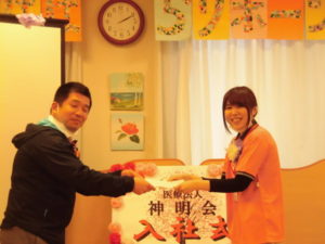 急遽、リボーンデイサービスフロアで、ゲスト様と一緒に入社式を行いました??