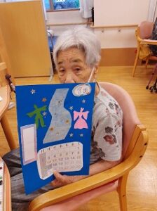 通常は塗り絵や漢字パズル等に取り組まれますが、今は7月のカレンダー作りを中心に提供しています。