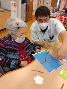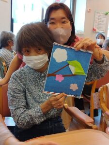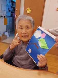 3月26日・29日は折紙教室にて「梅とうぐいす」の壁掛けを作りました。