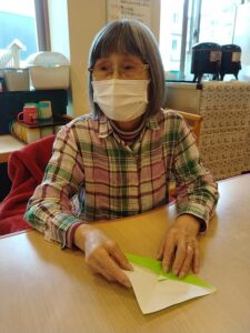折り方を説明しながら、ゆっくり折って頂きましたが、なかなか難しく、苦戦するゲスト様が多かったですが、完成すると・・・「わぁ~可愛い」「折るのは難しいけど折るの楽しいね」等の声が沢山ありました。