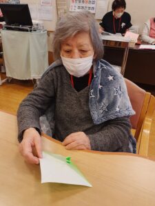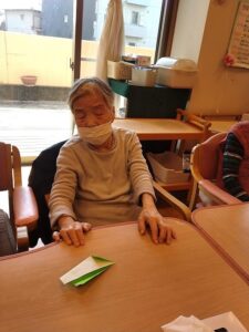 折り方を説明しながら、ゆっくり折って頂きましたが、なかなか難しく、苦戦するゲスト様が多かったですが、完成すると・・・「わぁ~可愛い」「折るのは難しいけど折るの楽しいね」等の声が沢山ありました。
