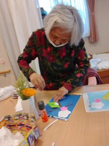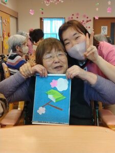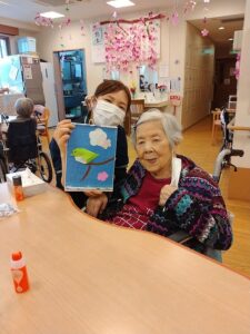 3月26日・29日は折紙教室にて「梅とうぐいす」の壁掛けを作りました。