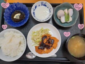 リボーンでは25日の昼食に名古屋名物味噌カツ定食が提供されました