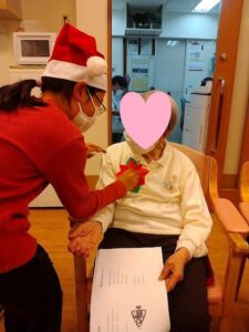 小学生の子供たちからポインセチアをゲスト様につけてもらいました。