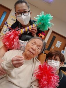 皆でボンボンシャンシャンを持って、応援します。![]()