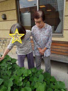 庭にはリボーン農園があり、皆様サツマイモの成長を見て「いつ頃が収穫かな?」や「おっきいのできてるかな♬」と収穫を楽しみに