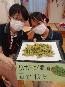リボーン農園で数か月前に植えた枝豆を今日収穫しました。