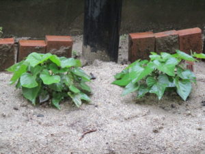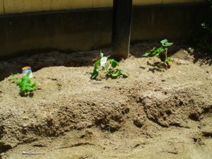 5月の後半には小さかったゴーヤとさつまいもでしたが、ゆっくりですが、成長してきました