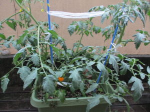 た?一緒に植えた赤いトマトは、はなが沢山ついてきて、出来るのがとっても楽しみです?