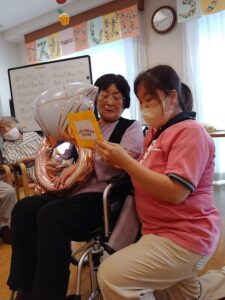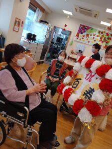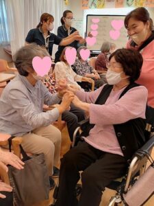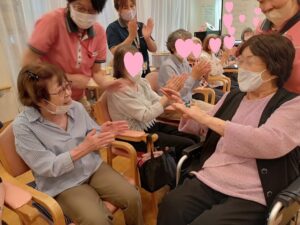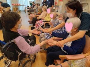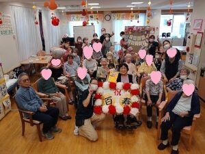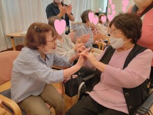 誕生日の歌が終わった後に、100歳の元気を頂けるように、皆さんとハイタッチ![]()