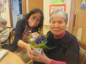 今日と明日は芸術の秋に因んで、毎月大人気のフラワーアレンジメントが行われます?行われました?
