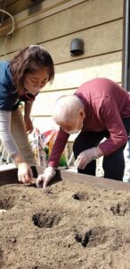 土はどのくらいかぶせるの?と園芸の先輩方の助けのもとイイ感じにできました![]()