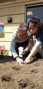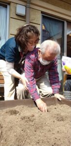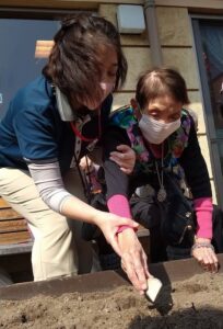 ゲスト様と一緒に、ジャガイモを植えました。向きはどっち? こっち?など声が聞こえました![]()