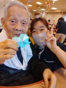 男性も少し照れながら完成作品とパチリと記念撮影![]()