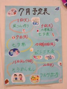 7月のイベントや8月のカレンダーもさっそく作りましたよ。下をご覧ください。
