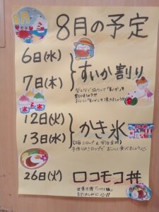 少し遅くなりましたが、8月のレクやイベント等をお知らせます。