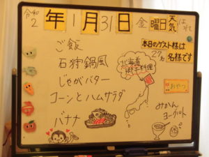 今日はデイサービスではご当地メニュー「北海道」の昼食でした