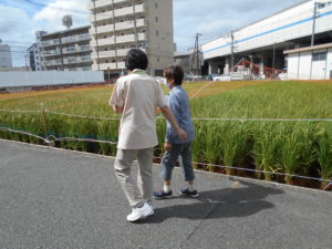 今日はお散歩日和なので外での歩行訓練を行いました。