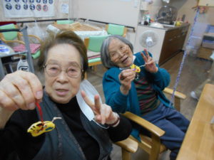 本日のクラフト教室にてちりめん根付の縁起寅?