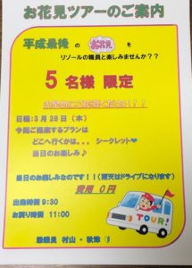3/28 9:30から11:00にお花見ツアーに行きますょ!!