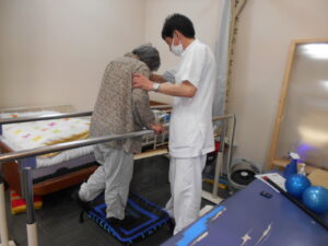 個別機能訓練・・平行棒、ジャンピングステッパーを