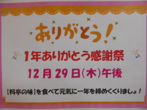 今年最後の営業日には感謝祭を行います。特別料理に【なだ万】の1品料理を提供します?