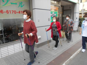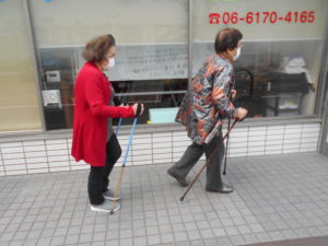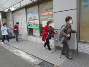 明日から4月という事でリゾールではポールスティックを使用して機能訓練の一環として屋外での歩行訓練を開始します?‼