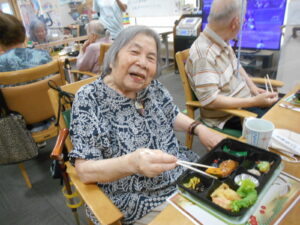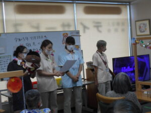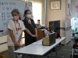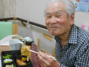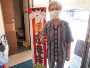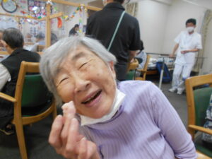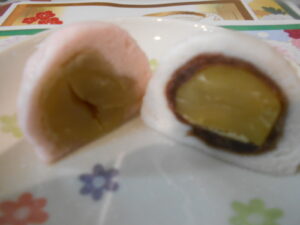 午前のおやつは紅白饅頭「よろこびの鐘」を
