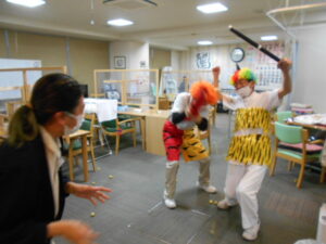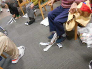 ちぎって丸めて、足で集めてといい運動になりました![]()