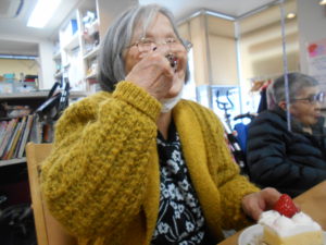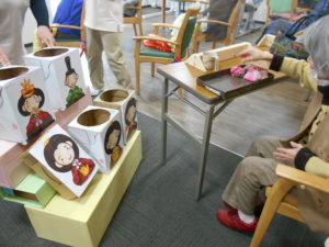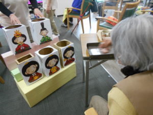 ゲームを楽しんだ後はかわいいおひな様のケーキを召し上がって頂きました??