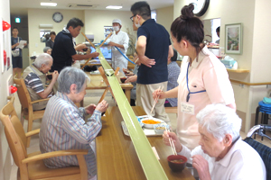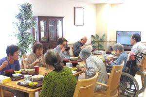 起床してから、バイタルチェックをします。 またデイサービスをご利用になられる方は、朝食後デイサービス「リゾール」に行かれます