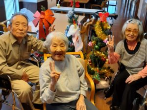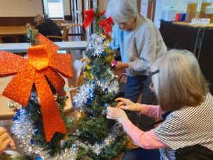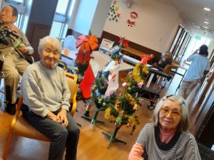 クリスマスツリーをゲスト様皆さんで飾りつけし、各階に飾っています。