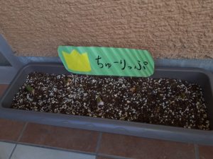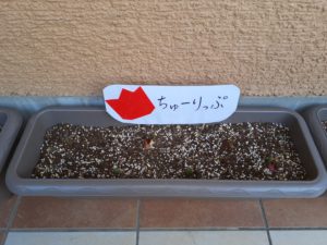 園芸レクにてプランターに昨年、チューリップの球根を植えました。