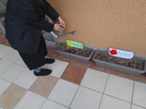 ゲスト様と一緒に水やりをし少し芽が少し出てきました?
