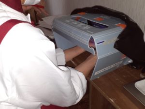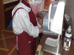 施設内研修として基礎の手洗いをしっかりできているか、手洗いチェッカーを使い全職員、看護師の指導で行いました。