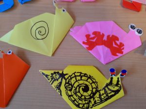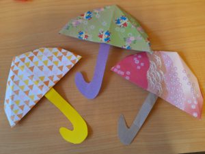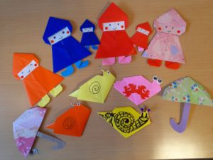 今回はもうすぐ梅雨入りという事で、カタツムリや傘を折り紙で作りました✨