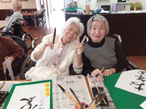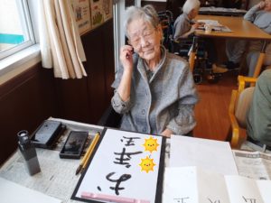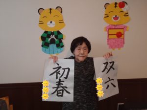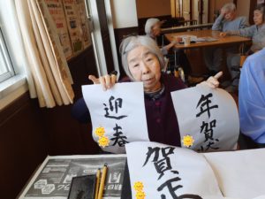 お正月で正装され書き初めに参加されたり、前もって書かれている方もいらっしゃいました❗