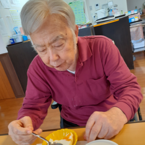 今回は厨房さんに協力して頂き、手作りでミルク寒天を作り提供致しました☕