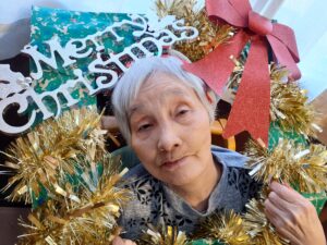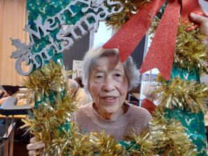 スタッフ手作りのクリスマスのフレームで写真撮影をさせて頂き、