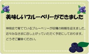 神明会で育てていたブルーベリーが収穫でき届く予定になっております。