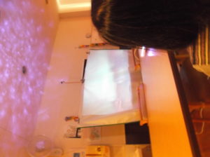 室内でも、開放的な気分を味わって頂こうと、映像と照明で再現しています。