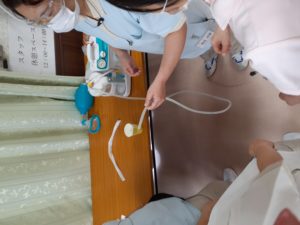 各階、吸引器の設置場所をしっかり把握しておき、もしもの時看護師がすぐに吸引器を使用できるように、電源の入れ方などの確認も行いました。