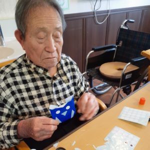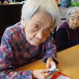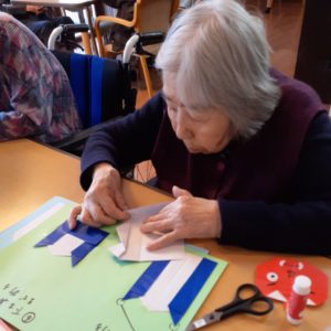 折り紙が少し苦手なゲスト様は、おたふくさんをスタッフと折ると、とても喜んで下さり暫く作った作品に見とれていました。