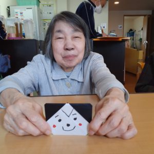 今回の折り紙レクは節分の準備です?