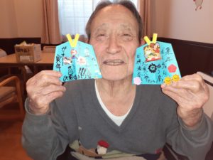 本日の折り紙レクは絵馬?を折りました?